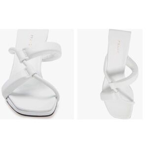 FRAME Le Gracie Asymmetric White Leather Slip on Slide Sandal Kitty Heel 7.5 NEW