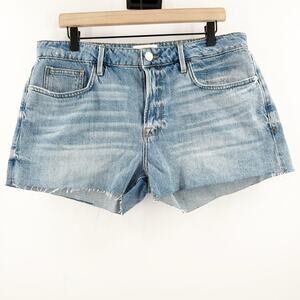 FRAME Le Grand Garcon Jean Shorts Size 30 NWOT Denim Raw Iceberg Distressed NEW 100% Cotton