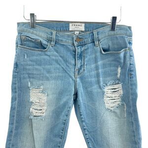 FRAME Le Grand Garcon Blue Denim Distressed Cut Off Bermuda Shorts Size 28