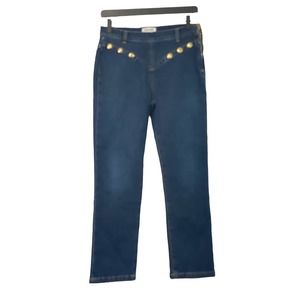 FRAME Le High Embellished Straight Jeans In Waldane Gold Studs Side Zip Size 28