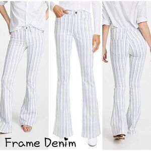 FRAME Jeans, Le High Flare, Blue White Stripe Denim, Flare Jeans Size 26, FRAME Denim Pants, Stretch Flare Jeans, Resort Denim, Vertical Stripe Pants, NWT Designer Jeans, FRAME Le High