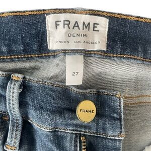 Frame Le Skinny de Jeanne Jeans Womens 27 Blue Distressed Raw Hem Ripped