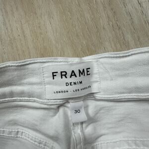 FRAME Le High Skinny Crop Jeans White Distressed Frayed Hem Stretch Denim 30