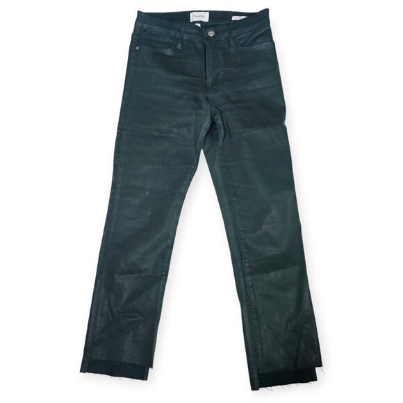 **Title:** FRAME Le High Straight Coated Jeans Pine Green Denim Size 29