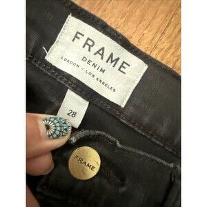 FRAME Le High Straight Film Noir Black Jeans Distressed Hem SZ 28 6