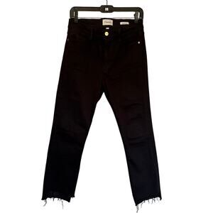 FRAME Le High Straight High Waist Staggered Hem Jeans In Film Noir