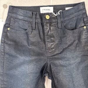 FRAME Le High Straight Indigo Lizard Coated Jeans Size 24