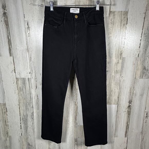 FRAME Le High Straight Jeans – Film Noir Black – Size 28 – High Rise – MSRP $238