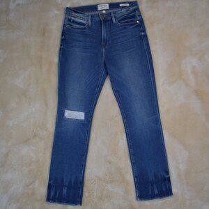 FRAME Le High Straight Jeans Size 28 Distressed Medium Blue Denim Cropped
