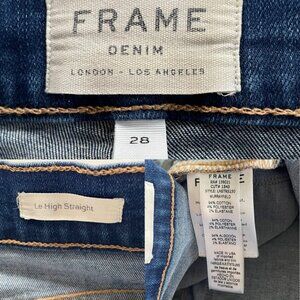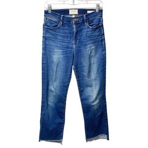 FRAME Le High Straight Leg Jeans Size 28 Womens Murrayfield Blue Raw Hem Stagger