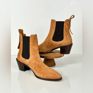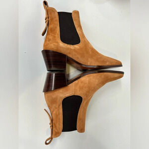FRAME Le Lexington Camel brown suede block heel Chelsea boots size 35.5/5.5US