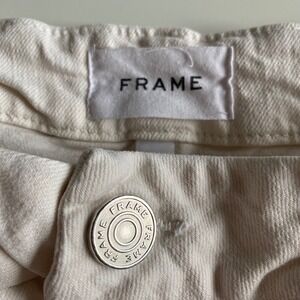 Keywords: FRAME jeans, Le Mini Boot, raw hem jeans, ivory jeans, cream jeans, bootcut jeans, stretch denim, designer jeans, women's jeans, casual jeans, size 26 jeans, FRAME denim, cropped jeans, off white jeans