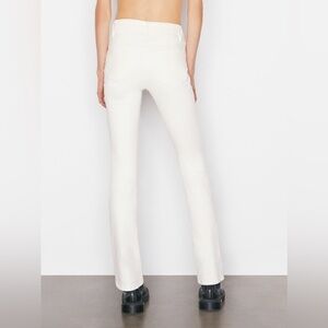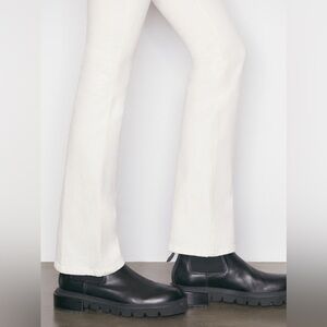 A boot-cut jean in an off-white wash with a little distressing at the waist. This mid-rise jean features a contour waistband and a close fit through the waist, seat, and thigh, and descends from the knee into a perfect mini flare. Made from stretch fabric for a comfortable, ecoconscious fit.