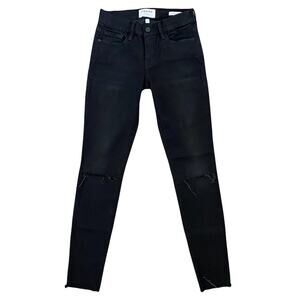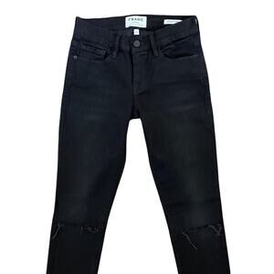 FRAME Le Skinny De Jeanne Distressed Knee Skinny Jeans Black Wash Size 25