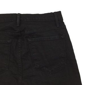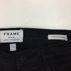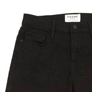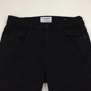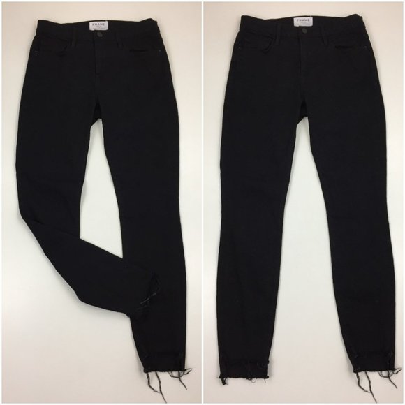 FRAME Le Skinny De Jeanne Film Noir Black Raw Step Hem Logo Hardware Denim Jeans