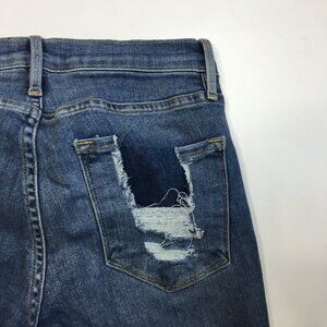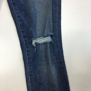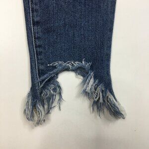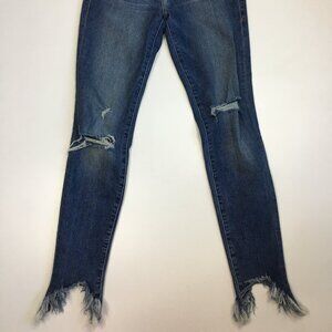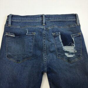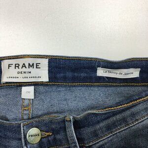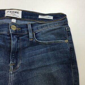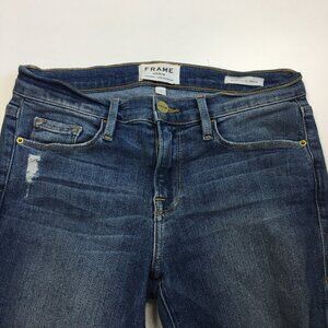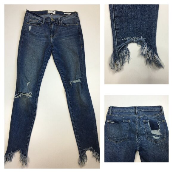 FRAME Le Skinny De Jeanne Knickerson Wash Raw Hem Logo Hardware Distressed Jeans