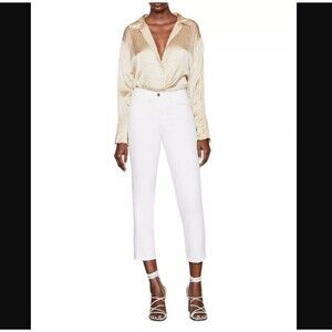 FRAME Le Sylvie Crop Jeans Side Slit White Denim Size 28 Modern Basics