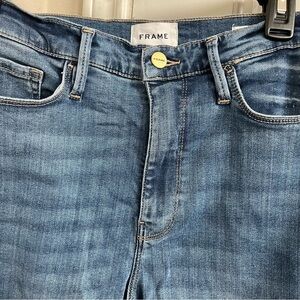 FRAME Le Sylvie Slender Straight Crop Denim Jeans w/ Frayed Raw Hem Size 28