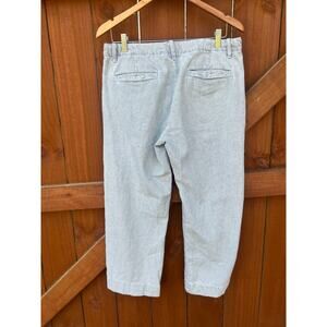 Faded, striped denim dials down the vibe of the refined trouser styling of easy-fitting pants cut with a high waist and cropped hems.