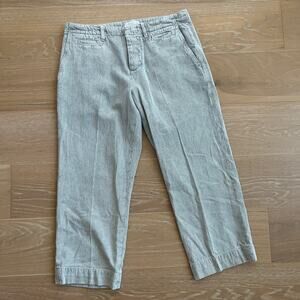 FRAME Le Tomboy Stripe Denim Trousers Jeans In Bleached Stripe. Faded, striped denim dials down the vibe of the refined trouser styling of easy-fitting pants cut with a high waist and cropped hems.