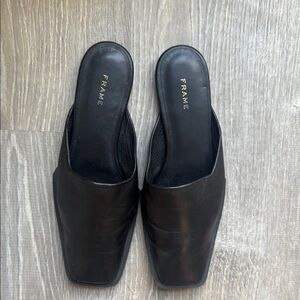 FRAME Le Town Leather Mules Slides Square Toe Noir