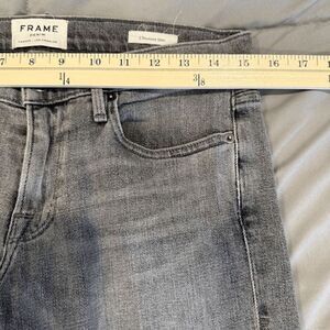 FRAME Le Homme Slim Jeans Rushmore Wash Men's Gray Black stonewashed Size 29 x32. Excellent condition. See photos for details and unstretched measurements. Shop my closet and bundle multiple items for discounts and one shipping fee!