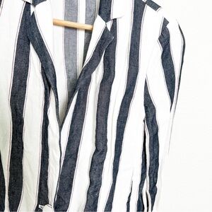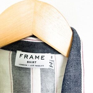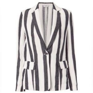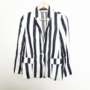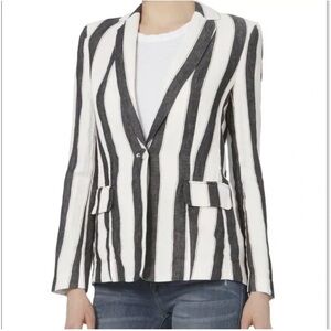 FRAME Linen Classic Striped One Button Blazer Jacket Blue White Size 6