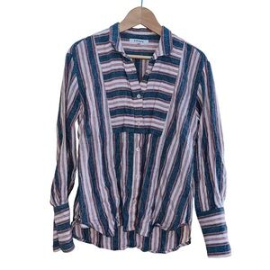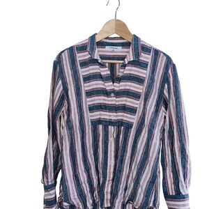 FRAME Linen Clean Collared Bib Shirt in Natural Size XS