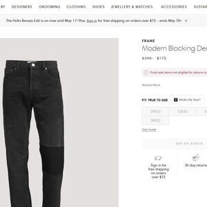 FRAME Men's Modern Blocking Denim Jeans - 33x32- 75% OFF (MSRP $398) - NWT. RARE. Sold out online for $175 (see photo for reference).