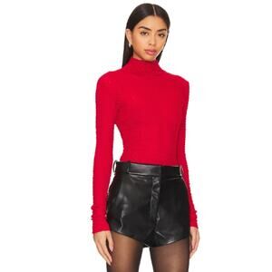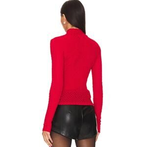 FRAME Mesh Lace Turtleneck in Cherry Red NWT Size Small
