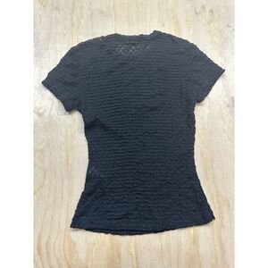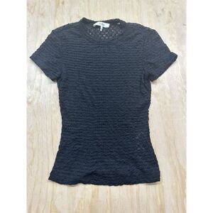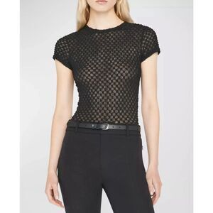 FRAME Mesh-Lace Crewneck Baby Tee - Black Small MSRP $158.00