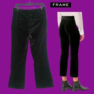 FRAME |NEW| Old Money Velvet Cropped Slit Flare Leg Pant 10. A high waist and split, flared hems add vintage charm to these velvet pants that work from day to night. Perfect for a night out or the holidays! See pics for details and the Table Chart in the pics to size this pant. Specific measurements are provided upon request.