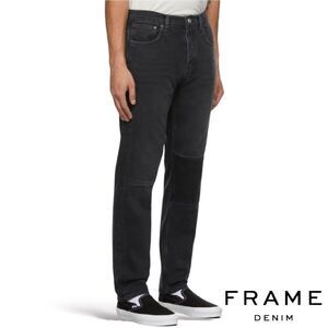 Relaxed-fit paneled non-stretch denim jeans in black.