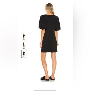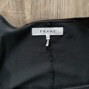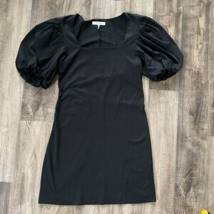 This chic FRAME Nina dress in size small is perfect for any occasion. The black knit fabric and short puff sleeves make it a versatile addition to any wardrobe. The dress features a pullover closure and has a short length that will show off your style. The brand, FRAME Denim, is known for its high-quality clothing and this dress is no exception.
