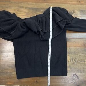 FRAME Off Shoulder Black Ruffled Collar Sweater Woman’s Size Medium Wool Blend