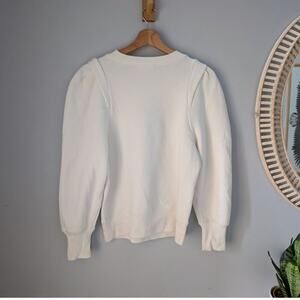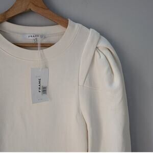 This is a FRAME Denim Pleated Panel Sweatshirt in size XS. Cream color. Puffed sleeves. New with tags. Approximately 23 1/2" in length.