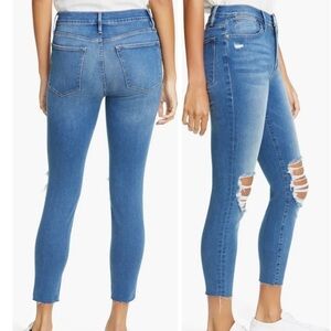 FRAME Ripped High Waist Raw Hem Skinny Crop Jeans in Gaby Wash Size 25