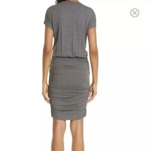 FRAME Ruched Jersey Crisscross Dress In Gray Size Medium