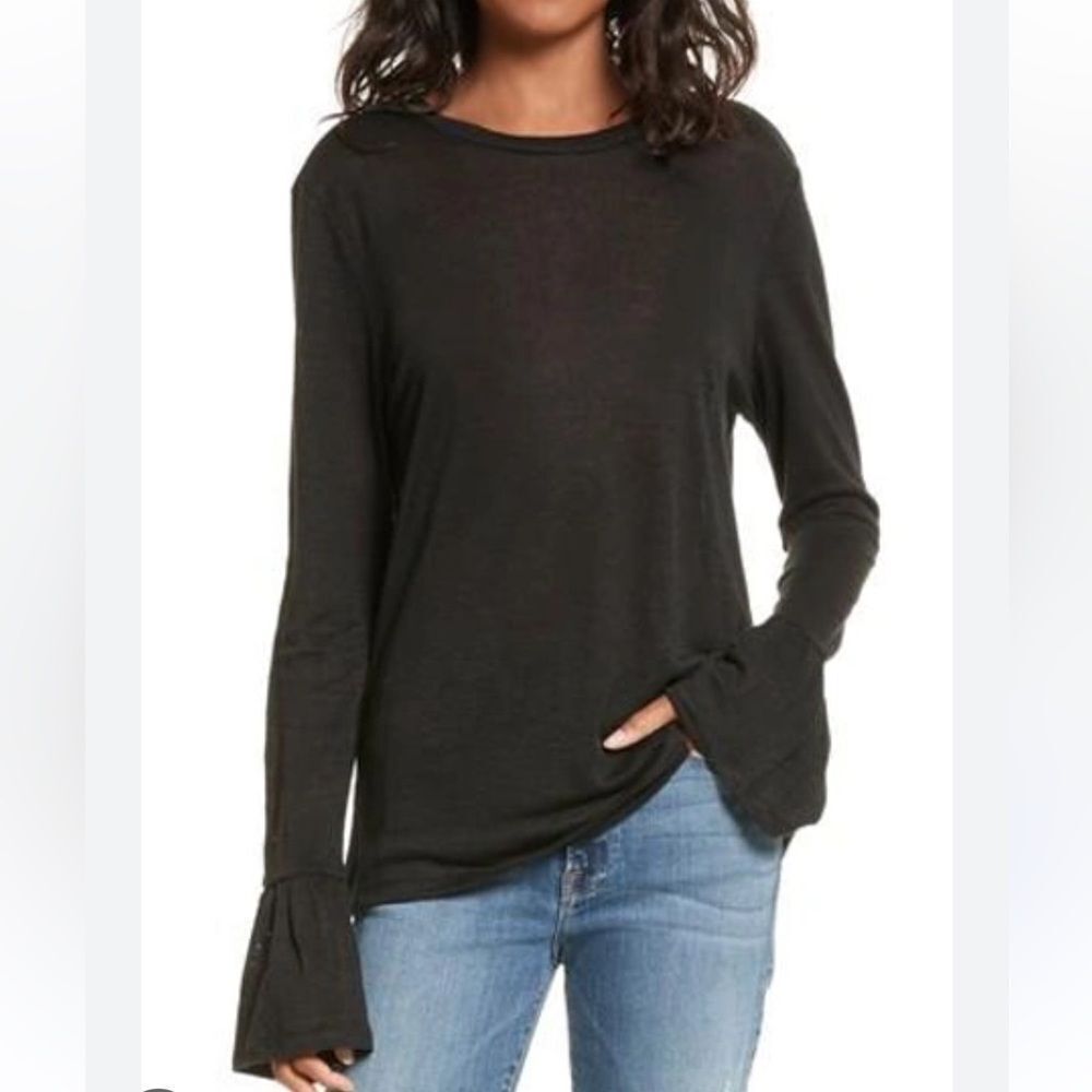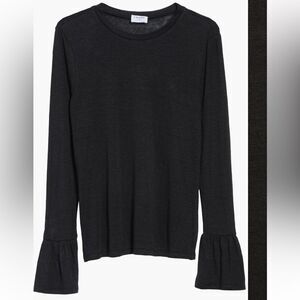 Size small. Great condition. A modern take on the typical tee, this linen version in a slouchy fit is framed with dramatically flared cuffs.