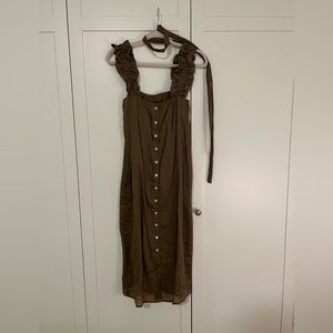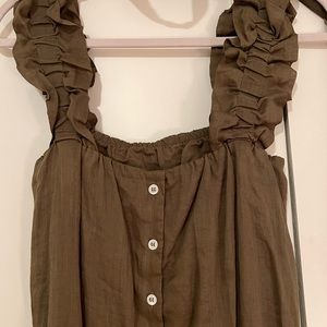 RUFFLE STRAP TANK DRESS, not sure of the size but more like S-M in color moss. Tag with size in dress cut out removed