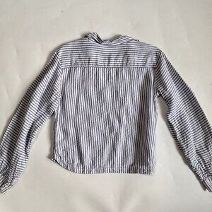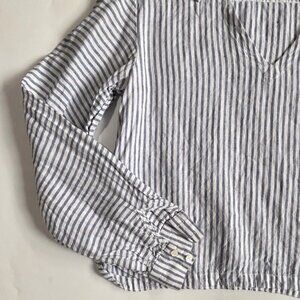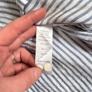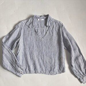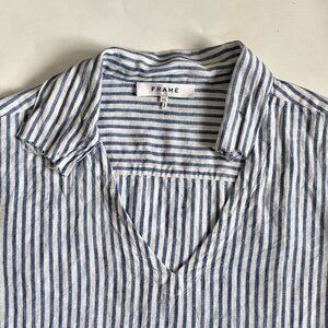FRAME STRIPED LINEN LONG SLEEVE BUTTON DOWN TOP
