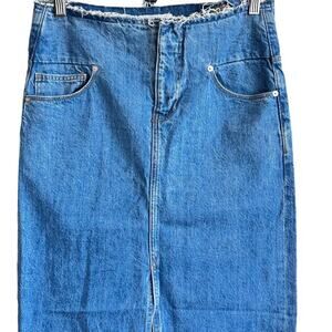 FRAME Sea Cut Off Waist Maxi Jean Denim Skirt Raw Hem Blue Front Slit size 26