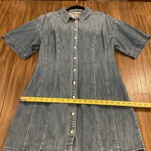 FRAME Seam Detail shoreline wash Short Sleeve Button Up Denim Mini Dress Blue XL