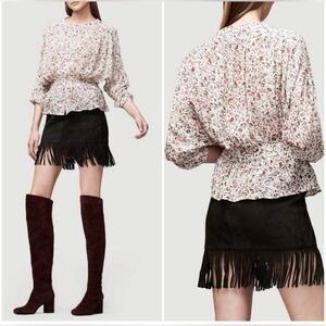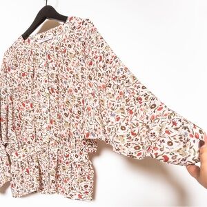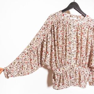🔍: flower, boho, bohemian, feminine, dainty, fall, winter, spring, flowy, draped, ruffled, fitted, designer, pretty, lightweight, batwing, blouse, fr36, 36, it40, 40