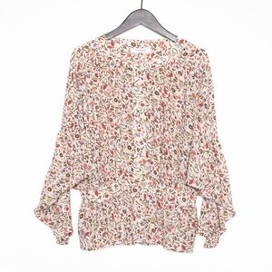 FRAME Silk Floral Print Ivory Red Green Draped Dolman Sleeve Top - S