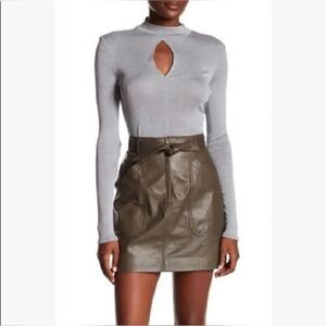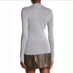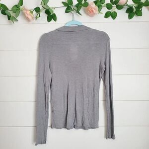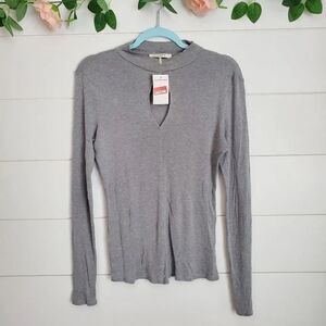 FRAME Silk Long Sleeve Mock Neck Keyhole Top Gray Size M