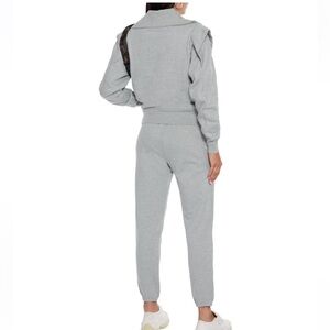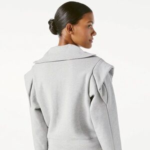 This half-zip sweatshirt is a modern staple, featuring pleated shoulders for a bold effect. It pairs perfectly with everything from vintage-wash jeans to silky slip skirts in the perfect shade of Heather gray. It is currently selling for $345 NEW. This one has been worn a few times. In mint condition.