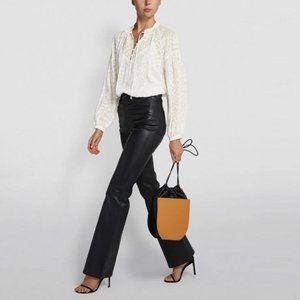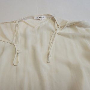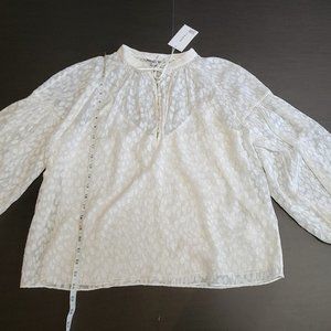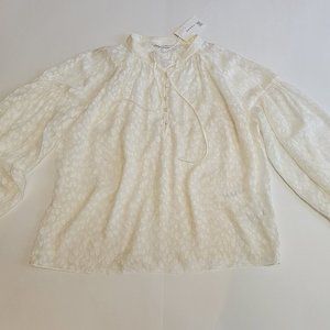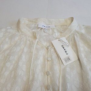 FRAME Spot Jacquard Silk Blend Smocked Peasant Top In Off White