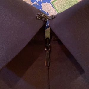 FRAME SILK short sleeve - mock neck. Navy blue. Back half zip closure/hook and eye.