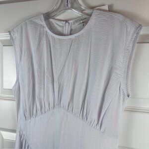 FRAME The Seersucker Gathered Seam Midi Dress White/Light Chambray Small RARE